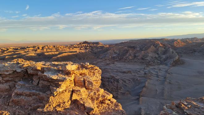 The Valley of the Moon lives up to its name. Eroded ridges and salt crystals stretch endlessly, glittering in the setting sun. As the sun set behind the Andes, the ground itself seemed to shimmer with a play of light and shadow, as if a great torch were being waved at the pleasure of some playful God.