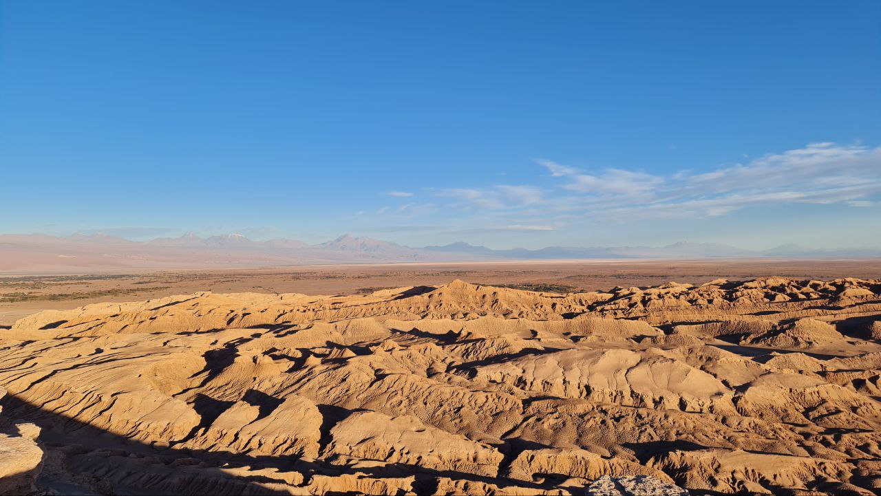 The Valley of the Moon lives up to its name. Eroded ridges and salt crystals stretch endlessly, glittering in the setting sun. As the sun set behind the Andes, the ground itself seemed to shimmer with a play of light and shadow, as if a great torch were being waved at the pleasure of some playful God.